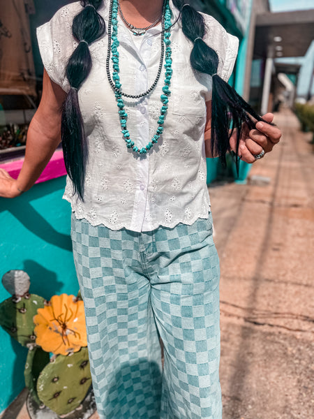 Elevate your spring wardrobe with the Ellie Eyelet Top, a refined piece that combines timeless elegance with contemporary style. Crafted in crisp white, this expertly designed top features delicate eyelet detailing that adds visual interest and breathability for warm-weather wear. The sophisticated construction ensures a polished look whether styled casually with denim or dressed up for brunch. Perfect for layering or wearing solo, this versatile essential transitions seamlessly from day to evening occasions.