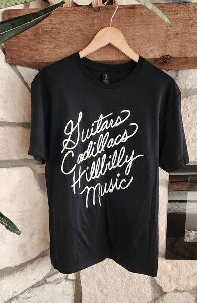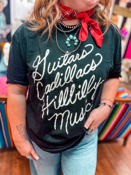 Guitars, Cadillacs & Hillbilly Music 🎶 This is has been a best seller in years past so we brought it back! Unisex tee!