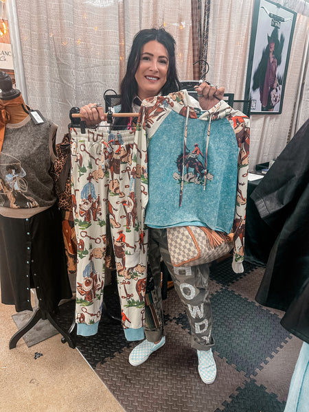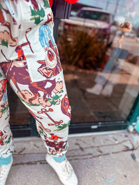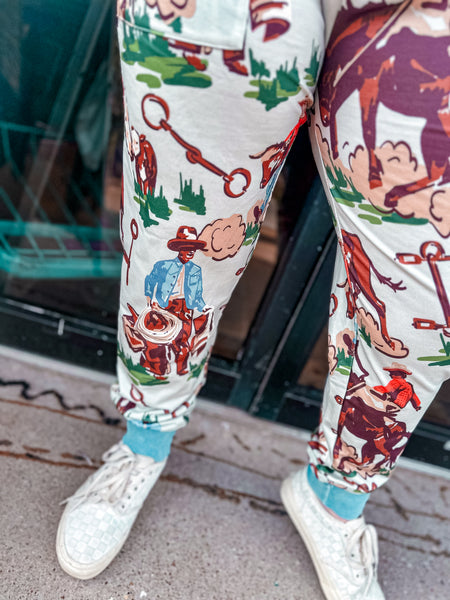 Vintage Ranch Joggers blend timeless western aesthetics with modern comfort. These printed joggers feature classic ranch-inspired designs that capture authentic Southwestern style. Crafted from soft, breathable fabric, they're ideal for relaxed days at home or casual outings. The elastic waistband and tapered ankles provide a flattering fit, while the durable construction ensures lasting wear. Perfect for anyone seeking stylish loungewear that doesn't compromise on quality or character.