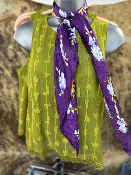 The Western Lace Tank is designed with intricate western lace detailing, offering an elegant touch to spring wardrobes. The agave color enhances versatility, while the lining ensures comfort and opacity. Ideal for layering or standalone wear, this tank top combines style with practicality for various occasions.
