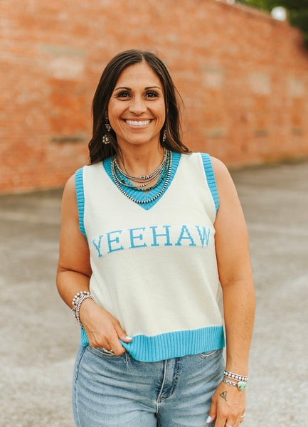 Yee Haw Sweater Vest Elevate your wardrobe with this expertly crafted sweater vest that seamlessly blends Western charm with contemporary style. The versatile layering piece features quality construction designed to complement both casual and polished looks. Perfect for those who appreciate distinctive fashion with character, this vest delivers the perfect balance of comfort and sophistication. Layer it over your favorite tees or dress shirts to create effortlessly put-together outfits that showcase your personal style and appreciation for bold, statement-making pieces.